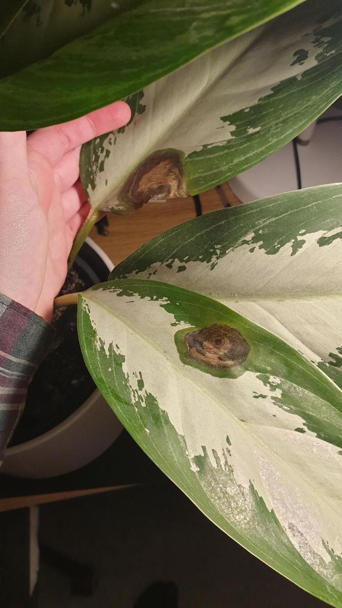 Yellow leaves, browning edges, sticky residue, fungal growth.