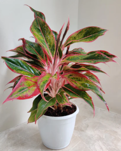 Agalonema Lipstick, a colorful shrub growing up to 2 ft, thrives in partial shade, high moisture, and loamy soil & it's Medicinal.