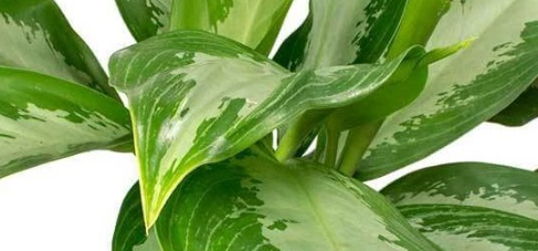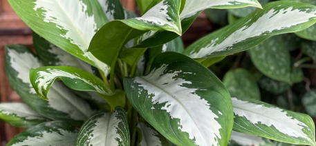 Aglaonema 'Diamond Bay', a slow-growing Chinese Evergreen, reaches 0.6-1.2 m in low to bright indirect light, with lance-shaped green leaves and silvery centers, known for air purification.