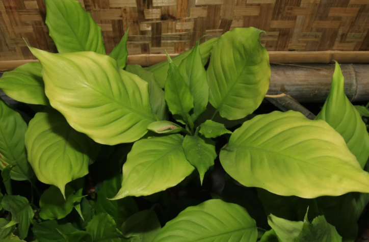 Aglaonema 'Modestum', a slow-growing Chinese Evergreen, reaches 0.3-0.9 m in low light, with large, waxy green or variegated leaves, effective at removing air toxins per NASA studies.