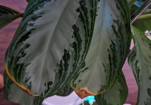 Aglaonema 'Silver Bay', a slow-growing Chinese Evergreen, reaches 0.6-1.2 m in low to medium light, with lush silver-green leaves edged in dark green, known for air purification, thriving in well-drained soil.