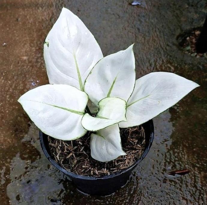 | Aglonema Feicui White, a compact shrub with variegated leaves, grows up to 2 ft, thrives in partial shade, and requires high moisture & it's Medicinal. |
