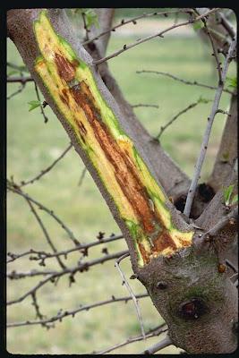 Cut all canker areas , Pruning back to healthy wood