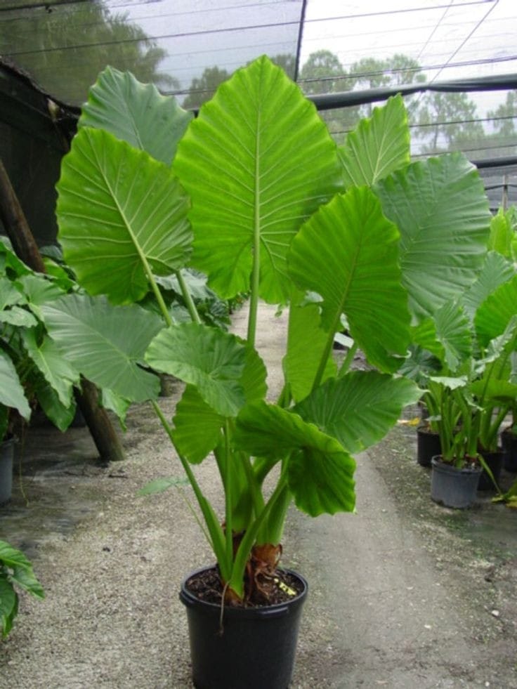 ALOCESIA, commonly known as Elephant Ear, is a tropical plant with large, heart-shaped leaves. Plant in well-draining, rich soil with partial shade. Keep the soil consistently moist and provide regular fertilization during the growing season for lush foliage.