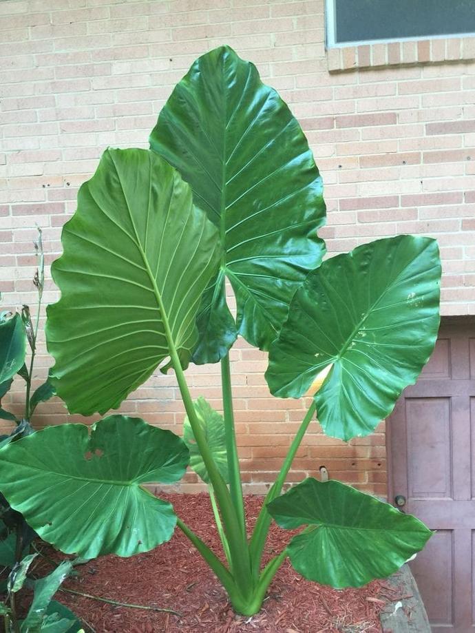 Corazon Alocasia, sometimes called blue metallic plant, is a variety of Alocasia known for its blue-green leaves. These plants usually only produce two or three leaves at a time, but they are large and stand out in a sea of green plants. In suitable areas this plant can grow up to fifteen metres, but in your garden you can expect it to grow up to three metres.