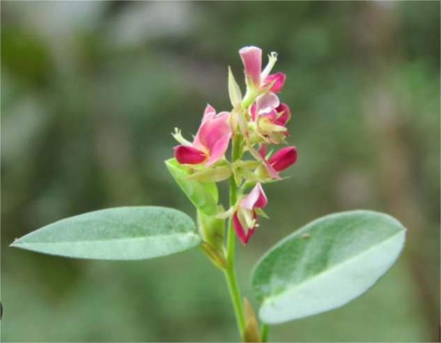 Alyce Clover (Alysicarpus vaginalis) grows up to 3 ft, prefers well-drained soil, full sun, moderate moisture, and is both edible and medicinal.