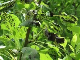 Infected tissues are characterized by their blackened, "burned" appearance, hence the name "fire blight. Symptoms first appear as brown to black spots on the leaves.