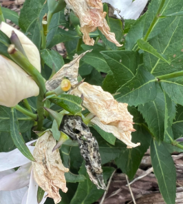 Yellowing, powdery coating, brown or black leaf spots, wilting