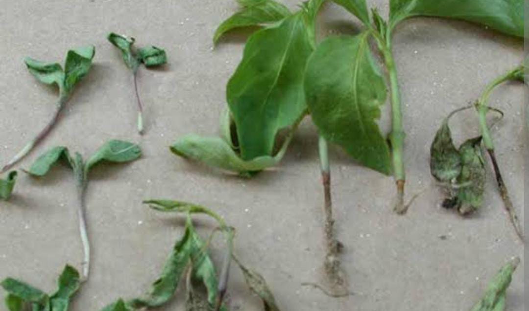 Attacks the young plants , root system are destroyed by fungi , black water soaked lesions may develop around the calyx