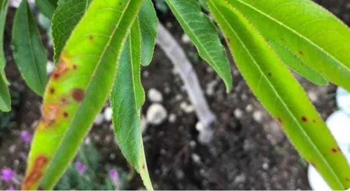 brown patches to appear on the plant., brown spots on the leaves which eventually dry up and fall away, leaving perforations in the leaf surface.
