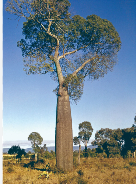 Bottle Tree (Brachychiton rupestris) grows up to 50 ft, prefers well-drained soil, full sun, low moisture, edible but not medicinal.