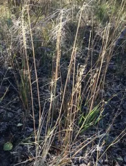 Bottlebrush Squirreltail (Elymus elymoides) grows up to 3 ft, prefers sandy soil, full sun, moderate moisture, and is neither edible nor medicinal.