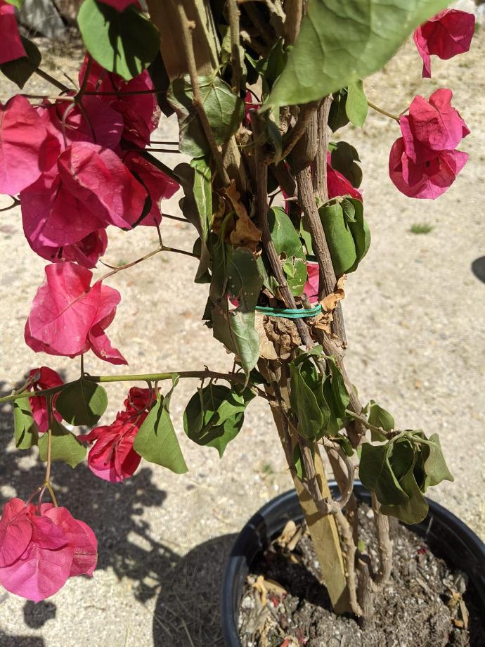 Too much or too little water is one of the most common problems with bougainvillea . Native to Brazil, this plant is drought tolerant and requires water only when needed. Too much water will cause the roots to become waterlogged and rot, and the plant's leaves will curl and turn yellow.
