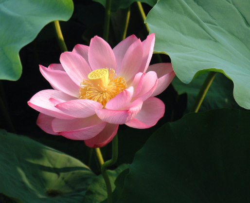 Aquatic perennial to 1.8 m, Buddhist Sacred Lotus yields pink/white summer blooms, thriving in submerged muddy soils. Asian origin, its edible seeds/rhizomes and medicinal properties make it ideal for ponds. Culturally significant, symbolizing purity.