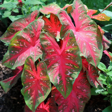Caladium Red is a moderate-growing herbaceous plant reaching 1–2 ft, thriving in USDA zones 9–11, with well-drained peat soil, partial to full shade, and moderate moisture, with no edible or medicinal uses.
