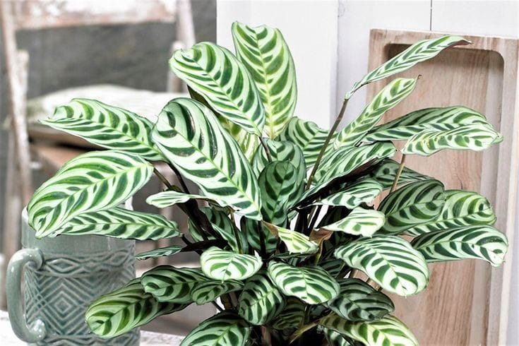 A medium-sized houseplant with zebra-patterned leaves, ideal for partial shade and high moisture, with no edible or medicinal properties.