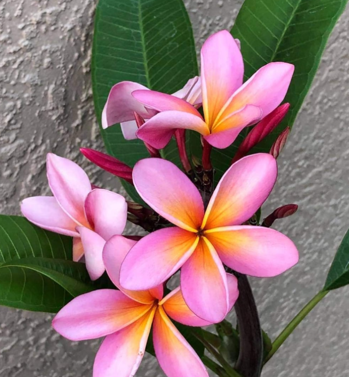 California Sally (Plumeria rubra 'California Sally'), a deciduous tropical shrub/tree, grows 3-6 m with moderate growth in well-drained sandy soil, thrives in full sun with moderate moisture, is non-edible with no medicinal benefits, and produces 4-inch multicolored flowers with a mild fragrance in summer-fall.