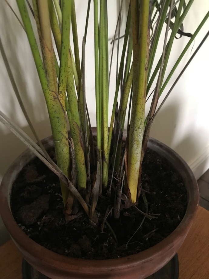 1.What are the signs of stress or ill health in a Chamaedorea palm?