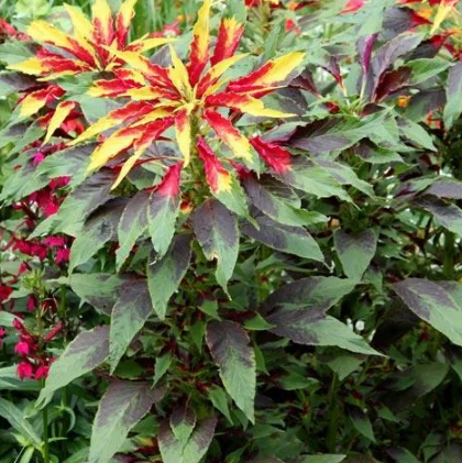 Annual herb to 2 m, Chinese Spinach yields colorful, edible leaves. Asian native, thrives in warm, sunny conditions. Used in stir-fries, rich in antioxidants.