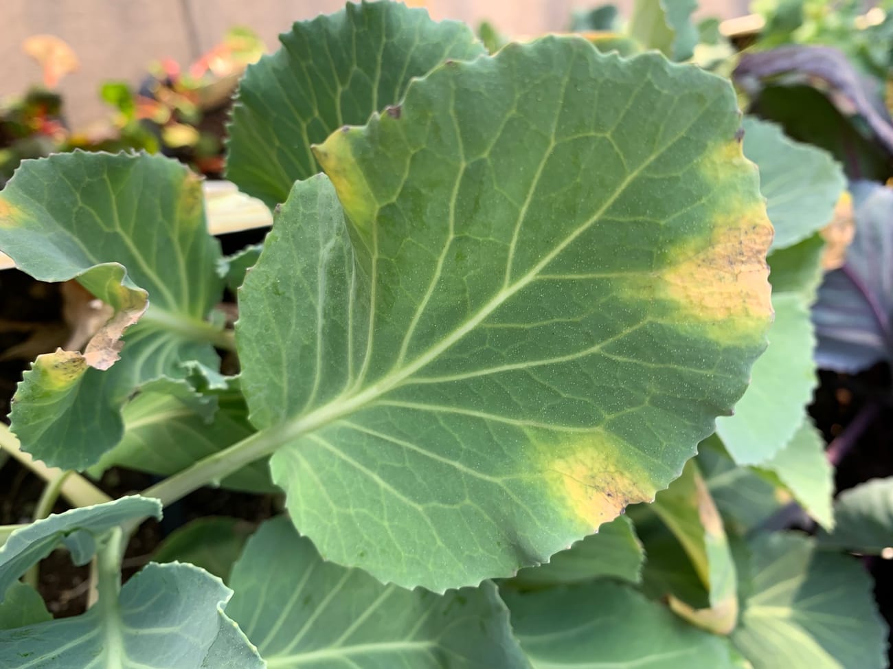 Lack of nutrients: Chlorosis, characterized by yellowing of leaves between the veins, may be due to a lack of essential nutrients. When grown in poor soil, collards require additional nitrogen as they are considered to be heavy feeders. Common illnesses are black rot, downy mildmew, Alternaria leaf spot, fusarium yellows, anthracnose, cercospora leaf spot, and white leaf spot.