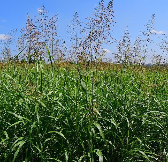 Columbus Grass (Sorghum almum) grows up to 8 ft, thrives in well-drained soil, full sun, moderate moisture, and is edible but not medicinal.