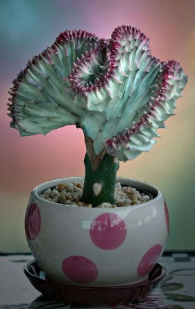 Coral Cactus (Euphorbia lactea) is a succulent growing 1-2 feet tall, hardy in USDA zones 9-11, with slow growth in well-drained, sandy soil, requiring full sun and low moisture, and it is neither edible nor medicinal.