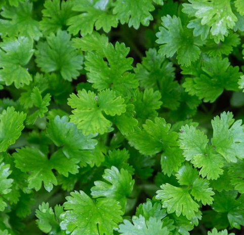 Coriander microgreens (Coriandrum sativum), moderate-growing annuals up to 2-3 inches, thrive in peat-based soil with partial shade, are edible, and offer carotenoids for eye health, native to the Mediterranean.