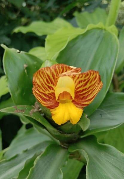 Costus spectabilis, also known as yellow trumpet, is a short African perennial. It is a perennial herbaceous plant that produces four large fleshy leaves that lie flat on the ground. Orange flowers bloom from late spring to early winter.