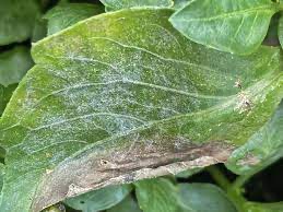 Whitish powdery spots on leaves and stunted growth and pale colour