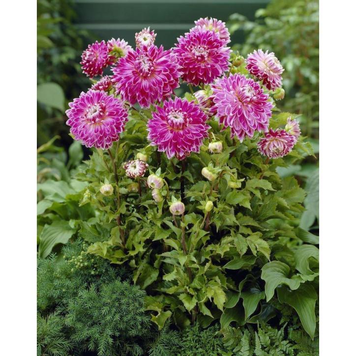 A bold, deep purple and white dinnerplate Dahlia, offering stunning ornamental blooms and edible petals for relaxing garden displays in full sun.