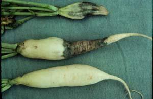 Alternaria blight: A disease that causes premature leaf death and can cause rot during storage and transportation. Root cracking: Fungal diseases can cause root cracking.