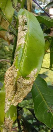 Black spots on fruit, sticky residue, white coating