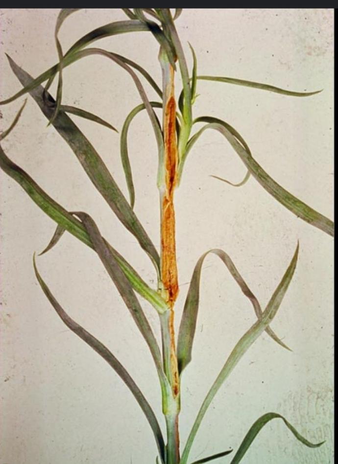Brown spots appear on the Leaves and stem. Growth stops and leaves turn yellow.