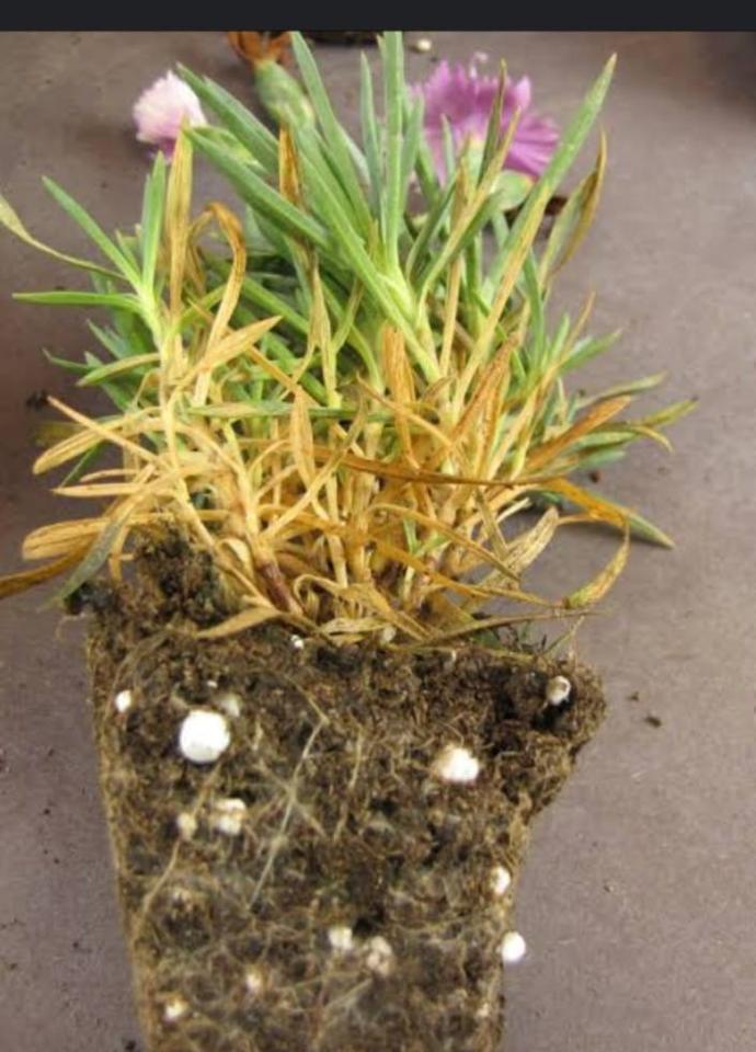 Dianthus plants prefer nutrient-rich, well-drained soil with 5 to 10 cm of compost. Avoid overwatering as this may cause root rot and mold.