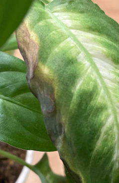 Browning edges, wilting, sticky residue