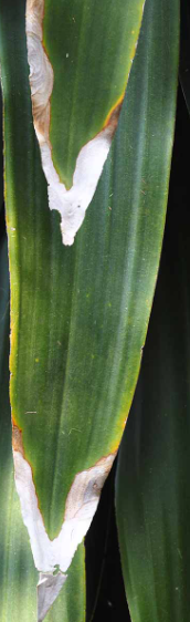 Stunted growth , leaf distortion , tip dieback , thinning of canopy .