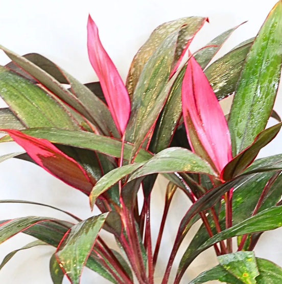 Cordyline 'Mahatma', a slow-growing tropical shrub, reaches 0.6-1.2 m in bright indirect light, with vibrant pink-green leaves, known for air purification and tropical appeal..