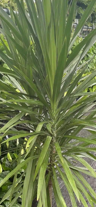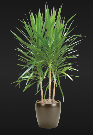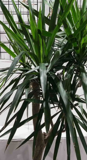 Dragon Tree 'Tarzan', a slow-growing shrub, reaches 1.8-2.4 m in medium to bright indirect light, with wider, longer green leaves and purple margins, retaining lower leaves better in low light, known for air purification.