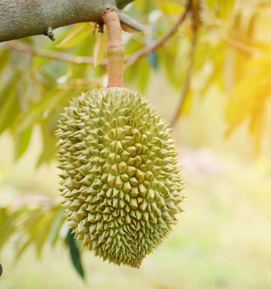 Durian (Durio zibethinus) is a tree that grows 80-165 ft tall, hardy in USDA Zones 10-11, prefers well-drained, loamy soil, full sun, high moisture, is edible, and has medicinal uses.