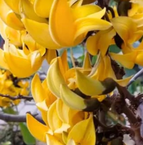 Dwarf Palash (Butea monosperma 'Dwarf'), a compact deciduous tree, grows 5-8 m with slow growth in well-drained sandy-loam soil, thrives in full sun with low moisture, is non-edible with medicinal benefits, and produces 2.5 cm orange-red flowers in Feb-Apr.
