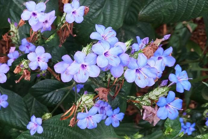 Also known as the blue sage, this variety features glossy green leaves and clusters of small, tubular blue flowers. It is a popular choice for tropical gardens or as a container plant.