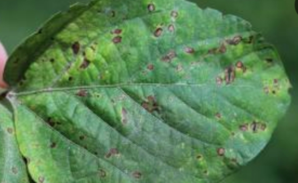 brown spots and yellow spots appear on the leaf. Water soaked lesions are formed.