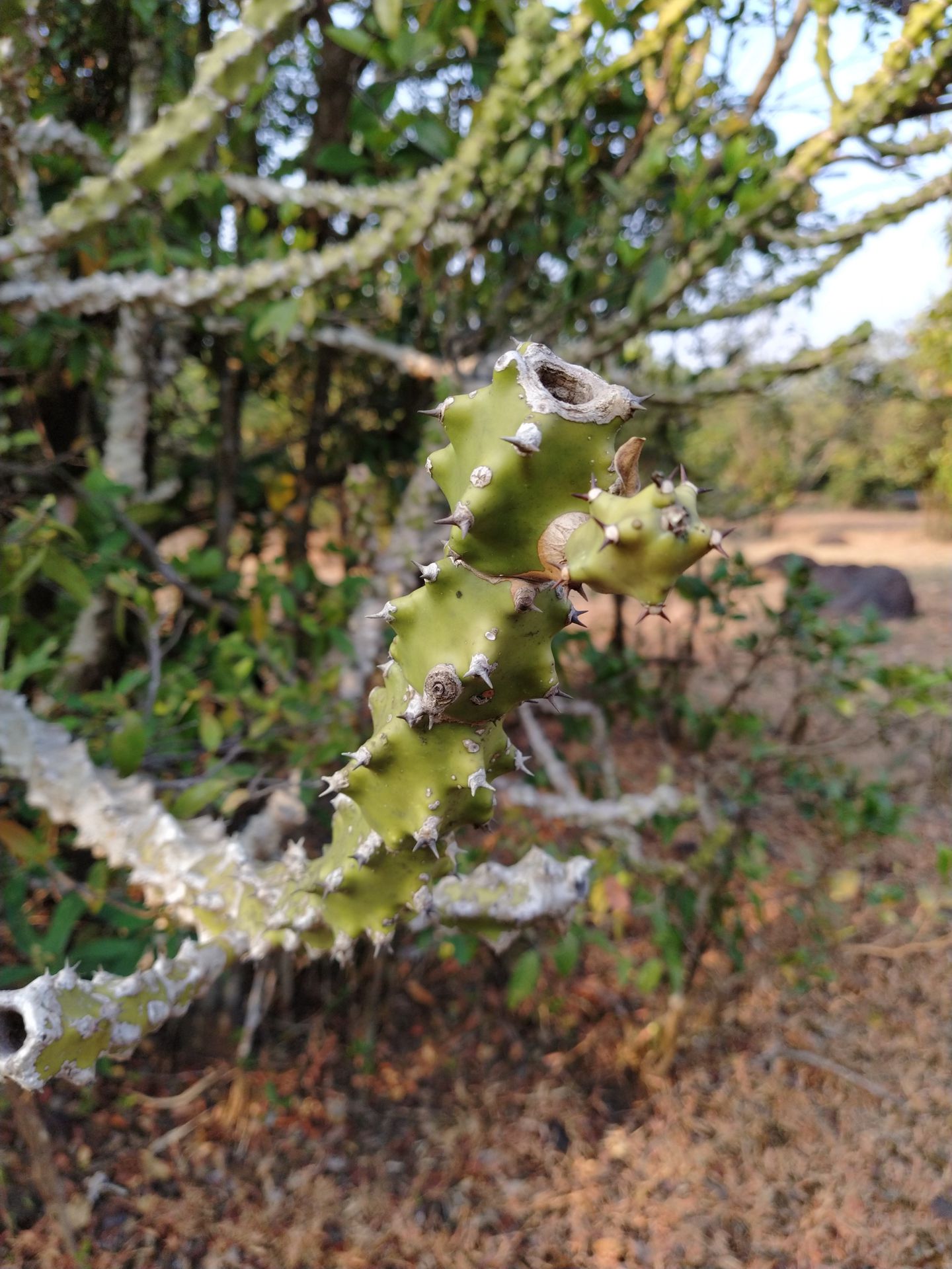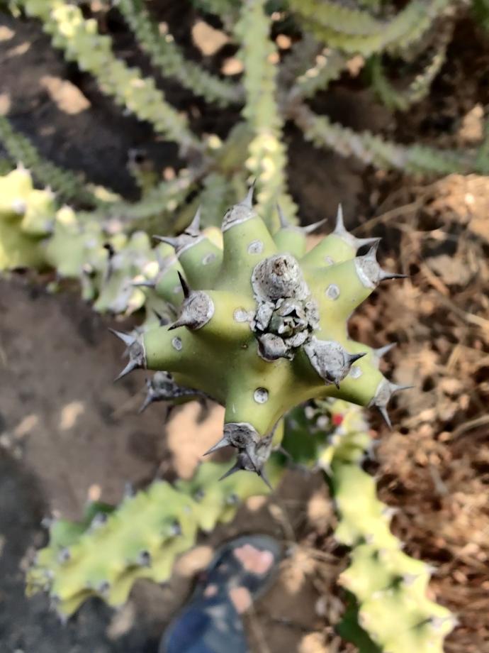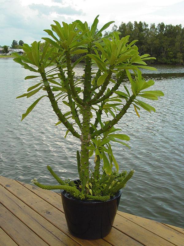 Euphorbia neriifolia is a slow-growing medium succulent that thrives in full sun and sandy soil. It is not edible but is used medicinally. |