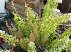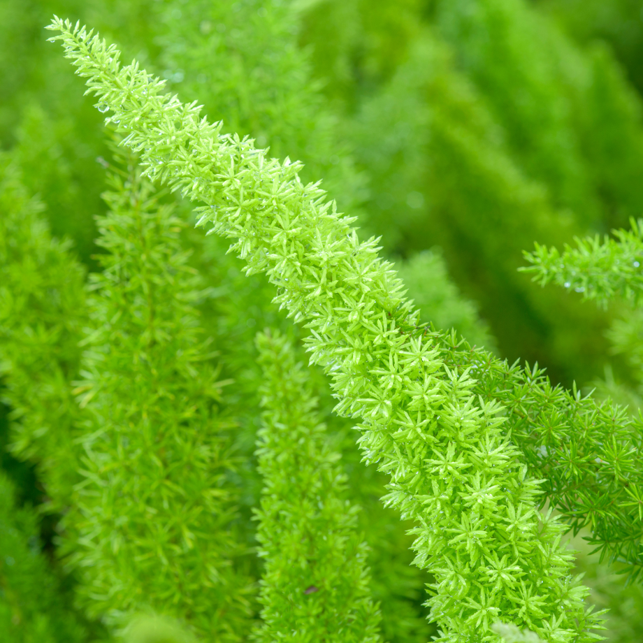 Foxtail Fern (Asparagus densiflorus) is a fern growing 2-3 feet tall, hardy in USDA zones 9-11, with moderate growth in moist, well-drained soil, requiring partial shade and high moisture, and it is neither edible nor medicinal.