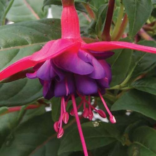 Fuchsia (Fuchsia) is a perennial that grows 1-3 ft tall, hardy in USDA Zones 10-11, prefers well-drained, rich soil, part shade to full shade, medium moisture, and has no edible or medicinal uses.