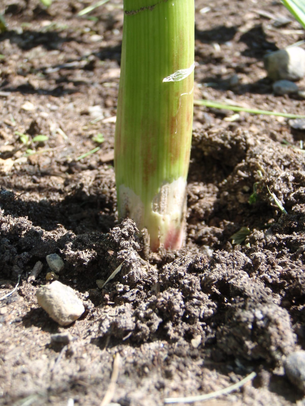 Choose well-drained soil and plant cloves individually, upside down, about 2 inches deep and 4-6 inches apart. Keep soil moist, especially during the growing season. Reduce watering as the bulbs do not rot. Apply fertilizer evenly in early spring and when the plant begins to produce bulbs. Use organic mulch to retain moisture, reduce weeds and control soil temperatures. Remove flower stalks (pedicles) that appear to transfer energy to seed growth. Prune off yellowed leaves but allow the plant to continue photosynthesizing. Keep the area around garlic plants free of competition for food. It is harvested when the lower leaves turn yellow and begin to dry. Dig the bulbs carefully and let them dry for several weeks in a dry, well-ventilated place. After hardening, cut off the roots and leaves and store the bulbs in a cool, dry place.