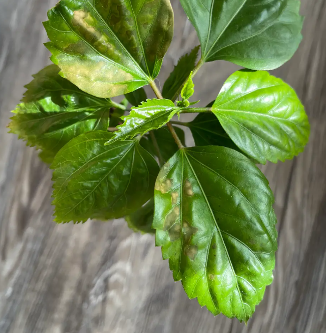 Yellowing leaves, distorted growth, powdery substance on leaves