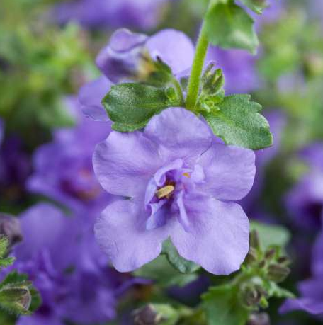 Double Indigo (Nerium oleander 'Double Indigo'), a hypothetical Mediterranean evergreen shrub, grows 1.8-2.4 m with vigorous growth in well-drained sandy-loam, thrives in full sun with low to moderate moisture, is non-edible and toxic with no medicinal benefits, and produces double hypothetical indigo (likely deep purple) flowers in summer.