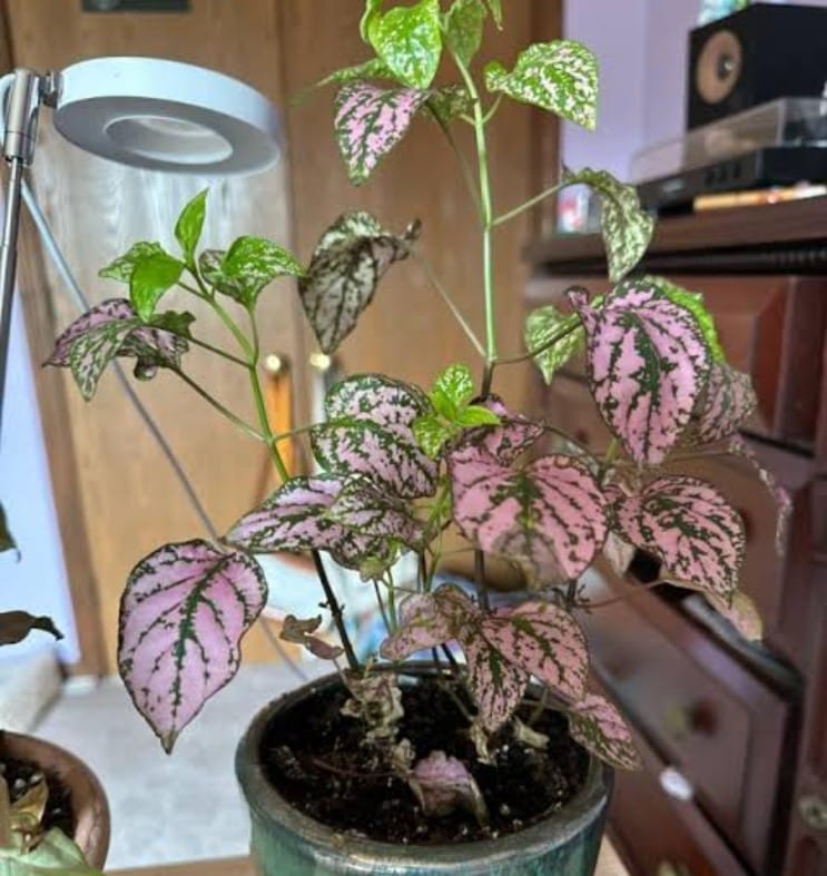 Hypoestes, also known as Polka Dot Plant, is an indoor plant with colorful foliage. Plant in well-draining soil and provide bright, indirect light. Keep the soil consistently moist. Pruning helps maintain a compact shape and enhance the ornamental appearance of its leaves.