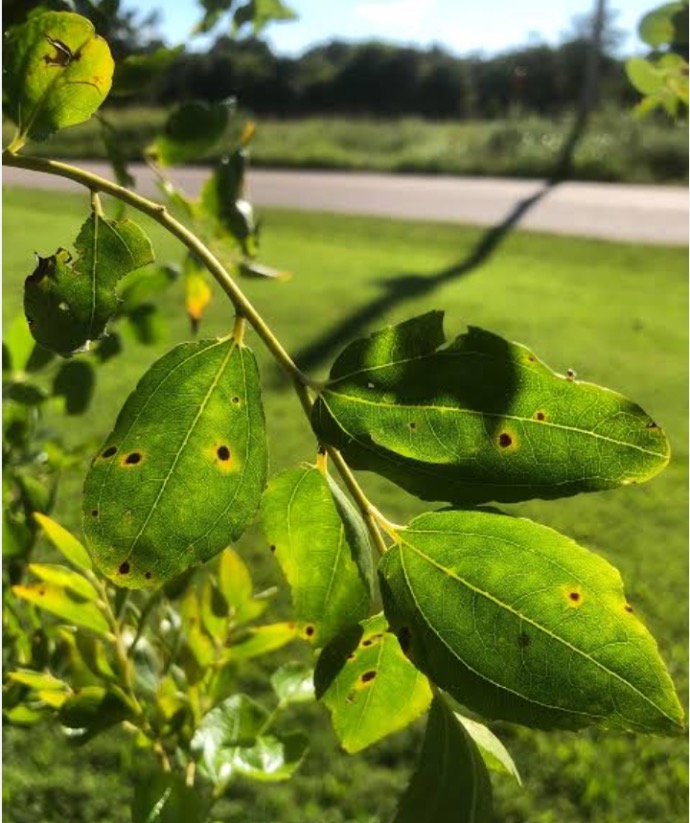 diseases are produced on leaves in the form of small , light brown to brown irregular spots. Individual spots may coalesce to form large irregular areas on the leaf blade.